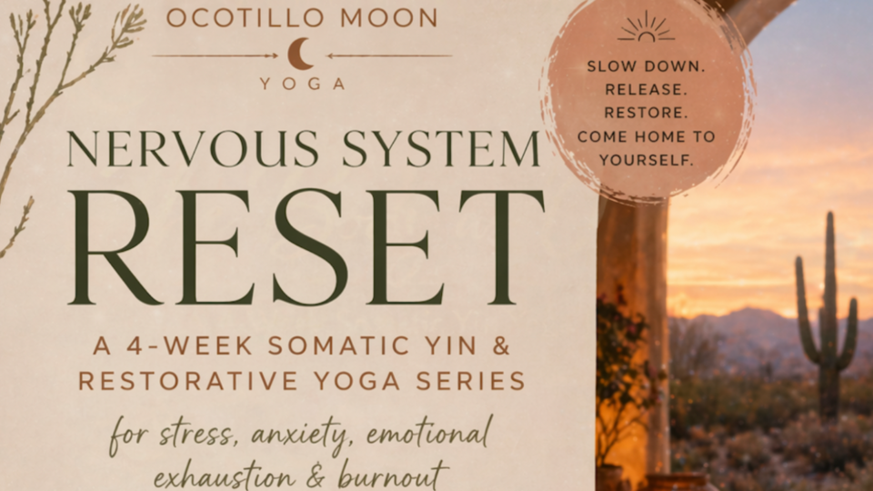 Nervous System Reset is a 4-week somatic yin & restorative yoga journey designed to help you release stress, regulate your body, and come back to yourself.